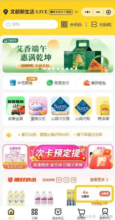 “便利店貴”是用戶固有認(rèn)知,文獻生活用“四個一”模式破局:一個店、一個人、一個月、一萬元運營成本。將原有便利店升級為 “生鮮云超市鄰里送”,依托線上商城補充 6000+SKU,開展區(qū)域中心店馬上送實現(xiàn)單店服務(wù)半徑從200米擴展至 3 公里,滿足用戶應(yīng)急便利到家需求;開展預(yù)定明日送/提,滿足用戶家庭計劃性量販屯貨實惠的購物需求。店員化身“地推達人”,在非高峰期通過喊麥、試吃拉新,將用戶引流至線上。同時推進會員體系升級,在會員積分的基礎(chǔ)上全場會員批發(fā)價,以及超級會員可享受超會超值優(yōu)惠價。