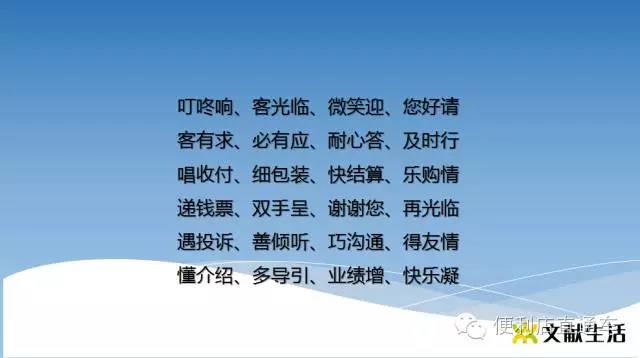 以上就是文獻生活三字歌·服務篇的內(nèi)容,通過本篇內(nèi)容,大家可了解到門店運營的具體流程,以及對顧客遇到問題如何解決。